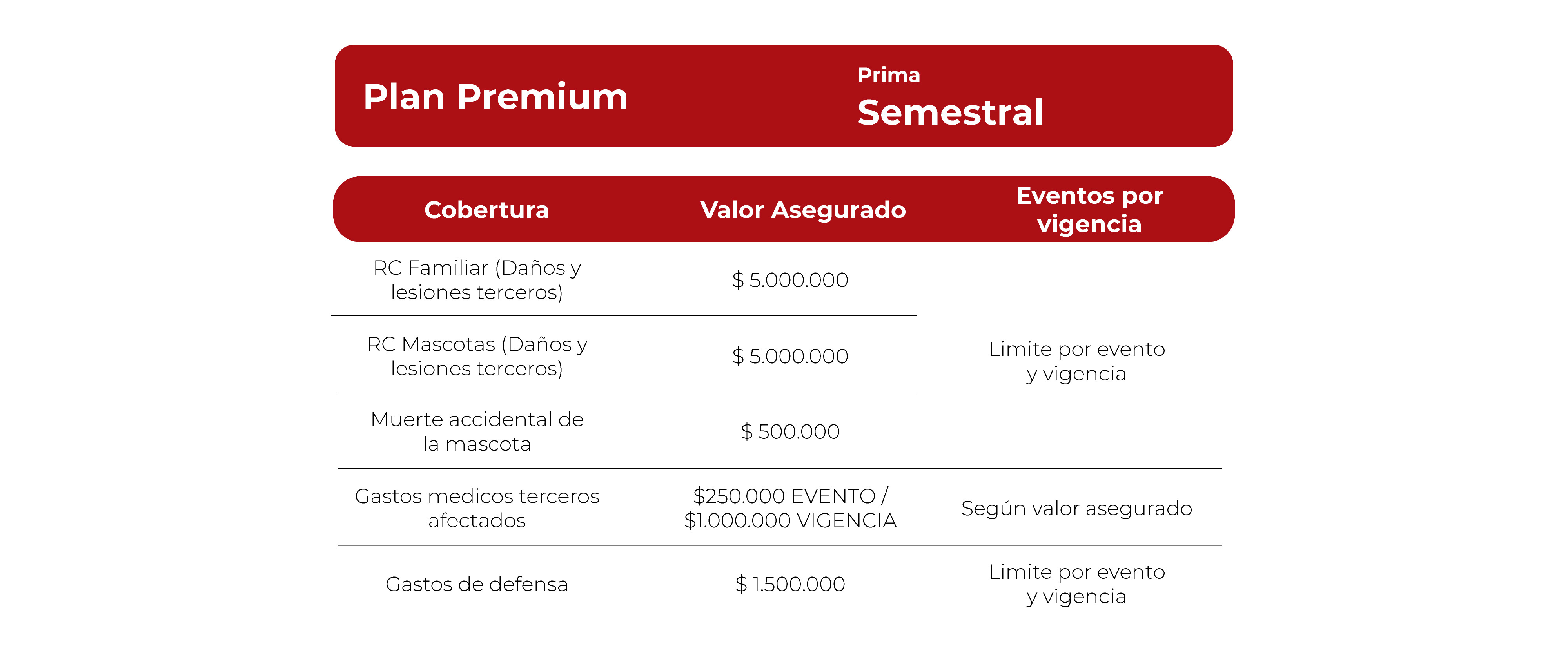 Cubre daños o perjuicios a terceros, muerte accidental, asistencias médicas y funerarias para tu mascota.